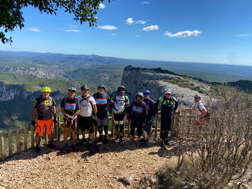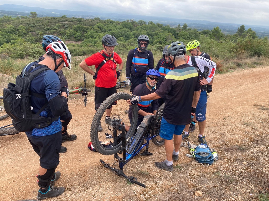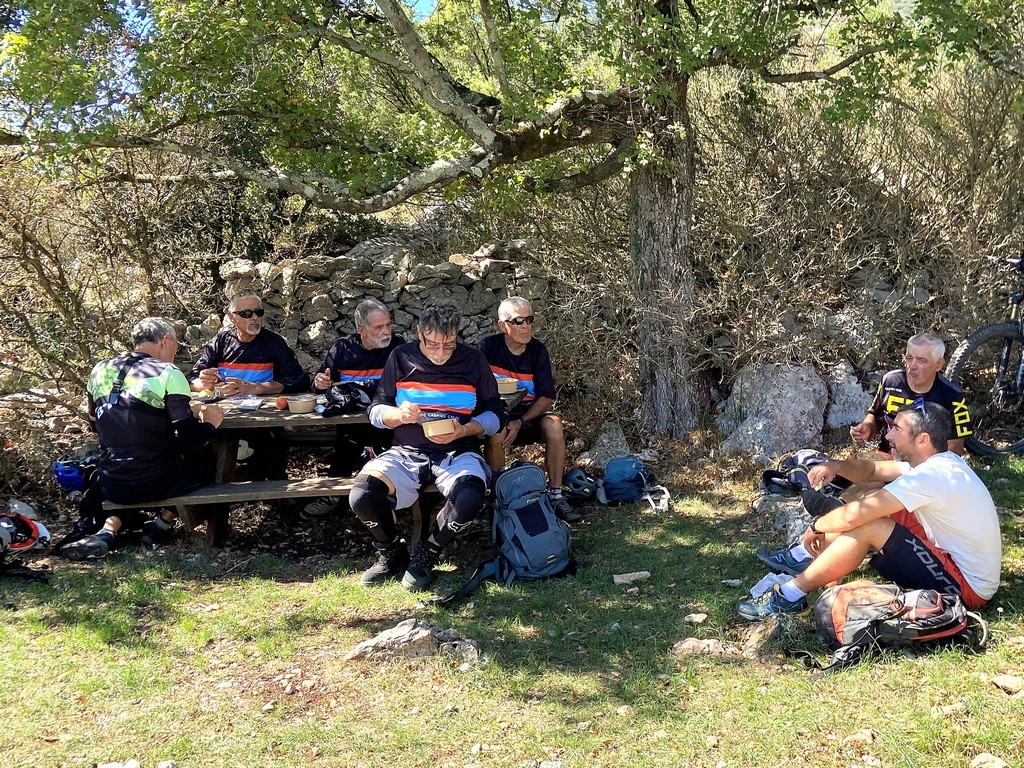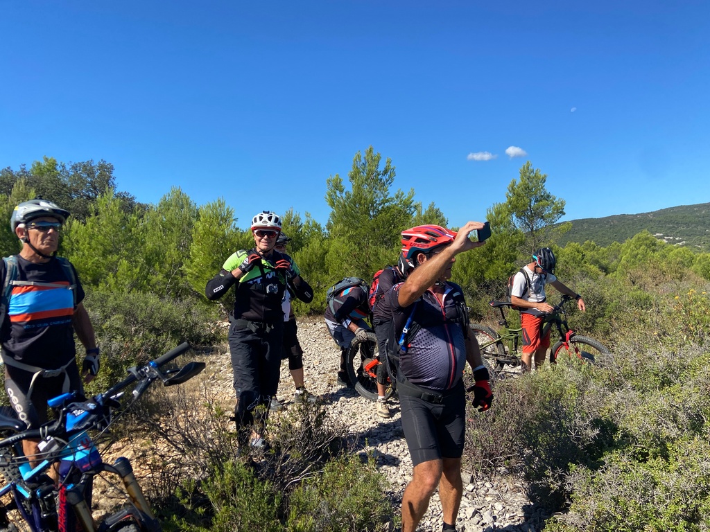 13 Septembre départ de tout le club (Michel, ‘Loys, Francis, Alain, Vincent, Robert, Jean Michel, Philippe, Renaud soit 9 au départ). Avec le guide Julien pour un tour du lac de Salagou sur les terres de Ruffe. Pour 51 Km et 1058 m de dénivelé positif. Encore une journée sans pluie. Que du bonheur : des pistes, des singles et la joie de pédaler.