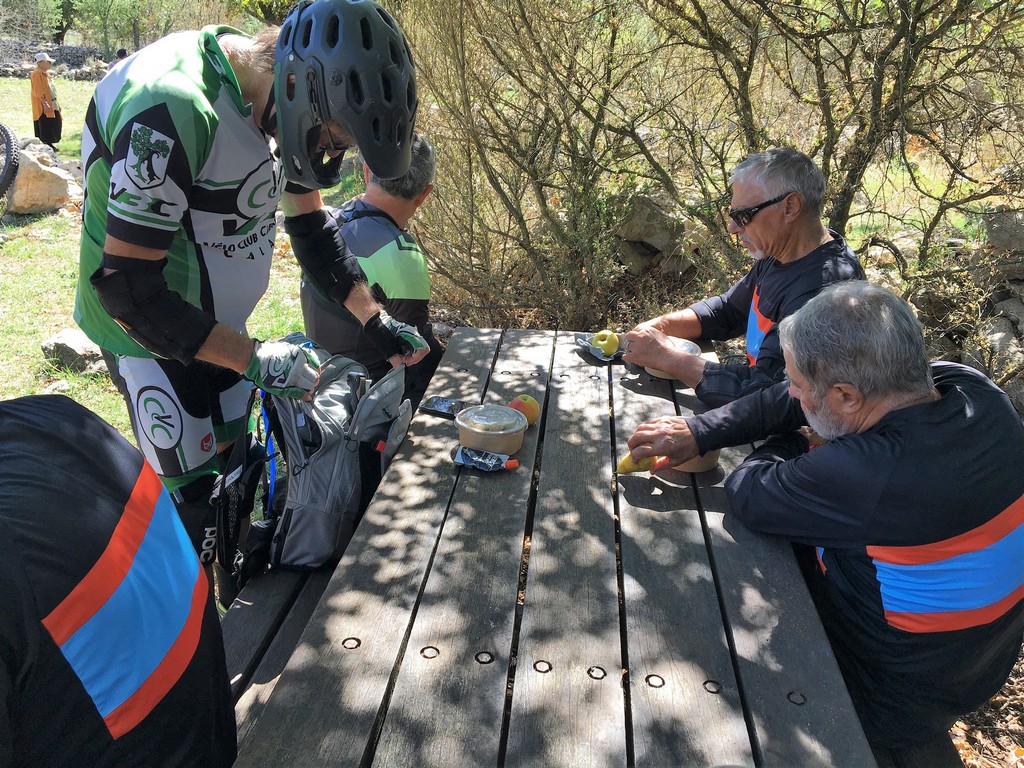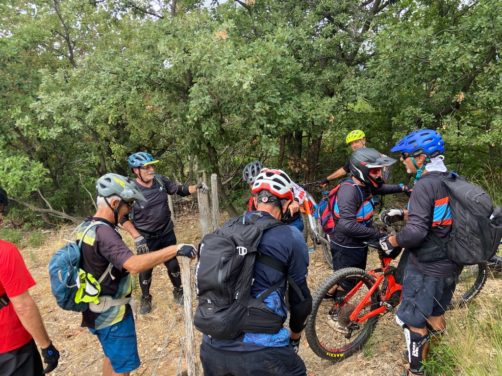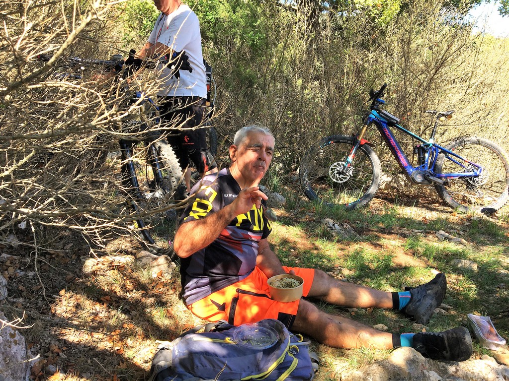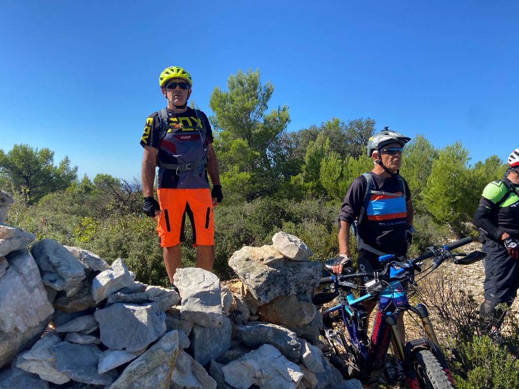 13 Septembre départ de tout le club (Michel, ‘Loys, Francis, Alain, Vincent, Robert, Jean Michel, Philippe, Renaud soit 9 au départ). Avec le guide Julien pour un tour du lac de Salagou sur les terres de Ruffe. Pour 51 Km et 1058 m de dénivelé positif. Encore une journée sans pluie. Que du bonheur : des pistes, des singles et la joie de pédaler.