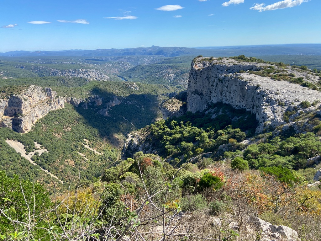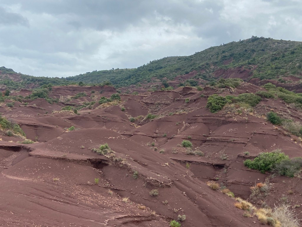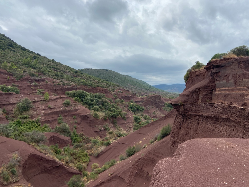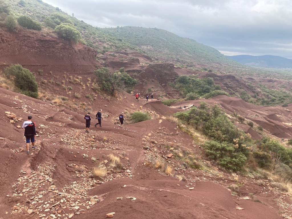 Le 14 Septembre, départ de Saint Jean de la Blaquière lieu d’activité de Julien dans la plaine. Nous allons découvrir un ancien four à chaux avec son tunnel déporté d’où étaient acheminés les wagons transportant la chaux. Les sentiers et chemins pris nous obligent à de nombreux et périlleux portages. Au sommet nous avons une magnifique vue sur la plaine et sur une grande étendue de vignobles. Nous arrivons sur un paysage totalement différent appelé le Colorado (canyon du diable) Exceptionnel au niveau géologique dû à la Ruffe et sa couleur rouge atypique de cette région. En quelques kilomètre, nous passons de la ruffe rouge aux roches calcaires dolomitiques du cirque de Mourèze et ses paysages teintés de blanc et de verts, au volcanisme noir avec des anciennes coulés de laves.
