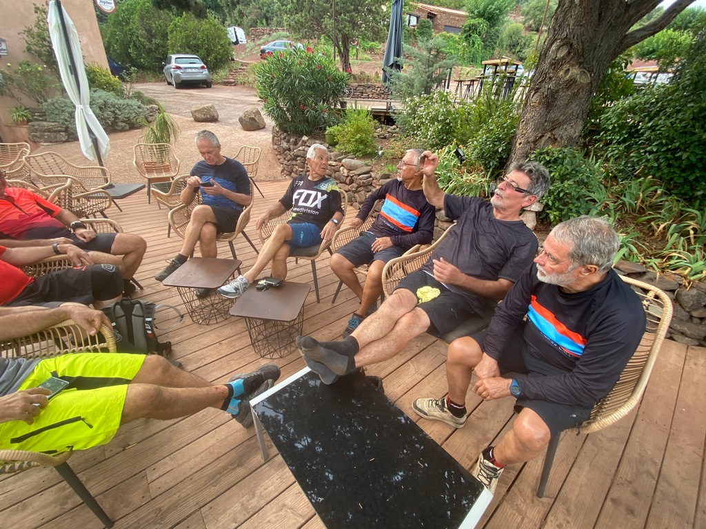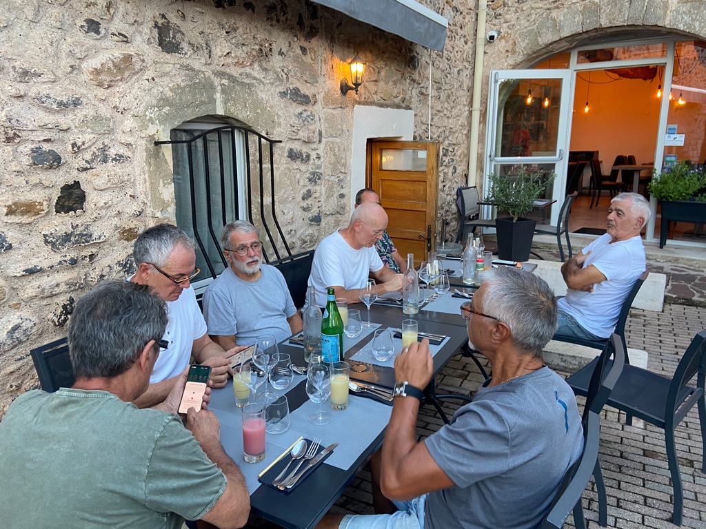 La semaine précédant le séjour, la météo annonçait un épisode cévennol et on craignait d'être obligé d'organiser un tournoi de tarot pendant 3 jours. Du coup comme la météo était favorable pour le lundi, Robert, Philippe et Jean-Michel ont décidé de partir le lundi matin pour faire le tour du lac quitte à le refaire le mardi avec le guide si le temps le permettait. Le reste de la troupe est arrivé le lundi soir et on s'est tous retrouvé autour d'une table à Lodève avant de prendre possession de nos appartements à l'hotel La Calade à Octon. Heureusement, la météo s'est encore trompée et nous avons pu faire les 3 sorties concoctées par Julien sans trouver la pluie.