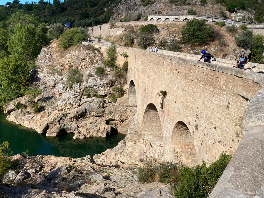 Le 15 Septembre et dernier jour, départ du Pont du Diable direction ST Guilhem du Désert pour 42 KMS et 982 M de dénivelé positif avec un magnifique passage en flan de roches avec quelques dévers et graviers.