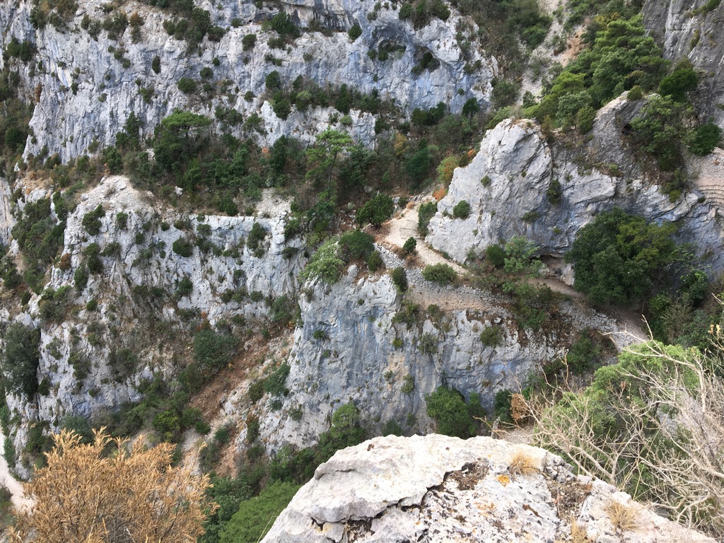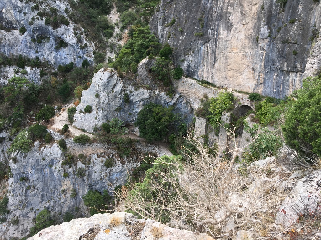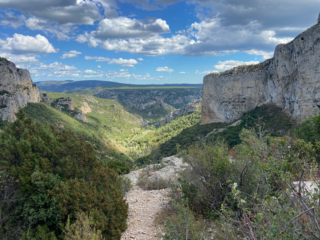 Nous découvrons le sentier d’arrivée sur « st Guilhem le Désert » à flanc de colline avec un dévers très prononcé, chemin tortueux avec des graviers et petites pierres de montagne.
