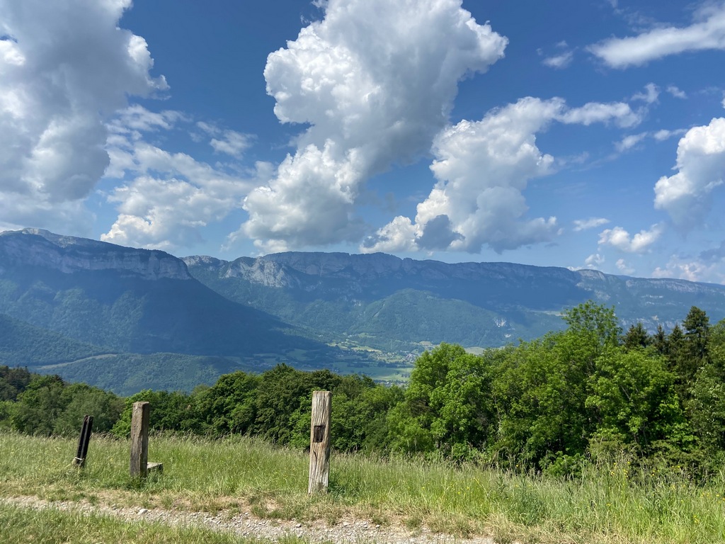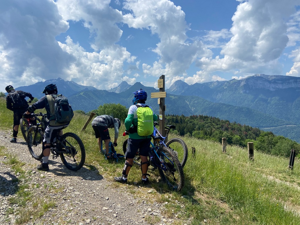 Pour cette première journée de VTT, Christophe est venu nous chercher au camping à 9h00 pour nous tester sur un parcours qui démarrait par les contreforts du massif des Bauges pour ensuite grimper sur le Plan Montmin.