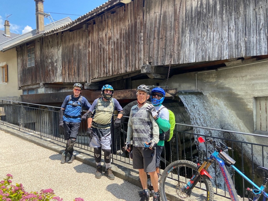 Après la pause, on a eu le droit à une descente d'enfer sur 5km avec 700m de dénivelé négatif jusqu'au village de St Ferréol où nous avons fait une petite pause pour admirer une roue à aubes assez originale.2023 06 08 12 23 V3C Annecy LL IP11016