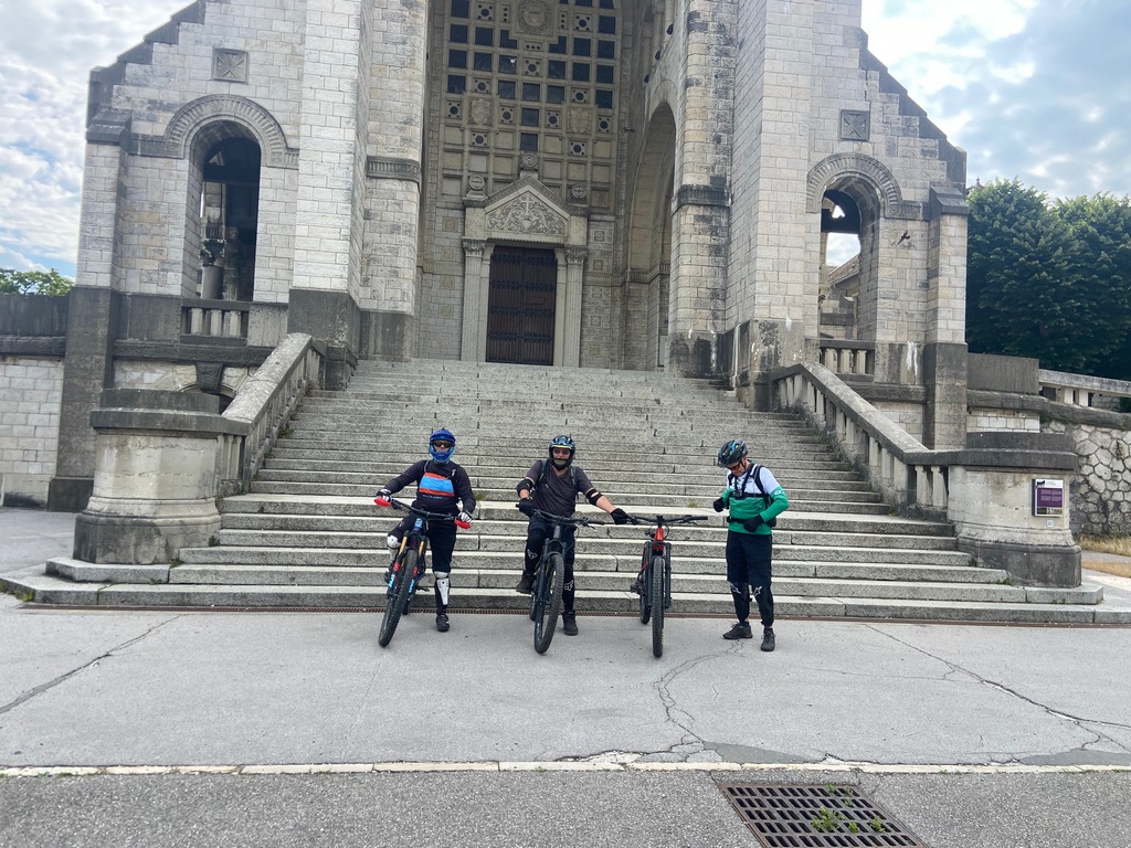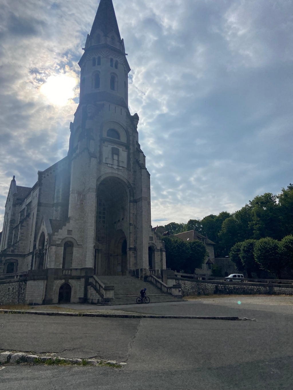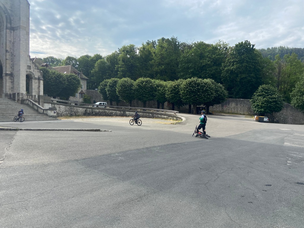 Comme le départ était à la Basilique de la Visitation à Annecy, Christophe nous avait conseillé d'y aller en vélo par la piste cyclable pour éviter les bouchons à cette heure-là (17 km depuis le camping).