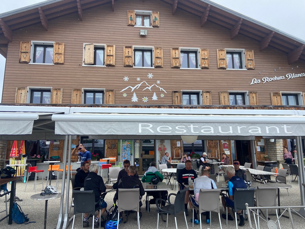 Là, nous nous sommes arrêtés au restaurant "les Rochers Blancs" pour la pause déjeuner et après quelques bières et sortes de tartiflettes, nous étions prêts à repartir.2023 06 09 12 55 V3C Annecy LL IP11034