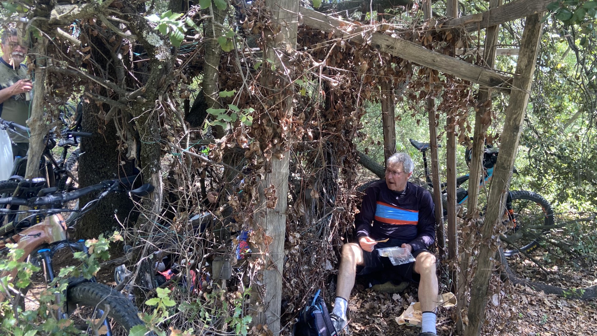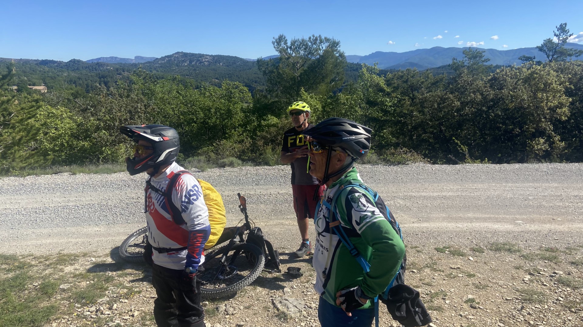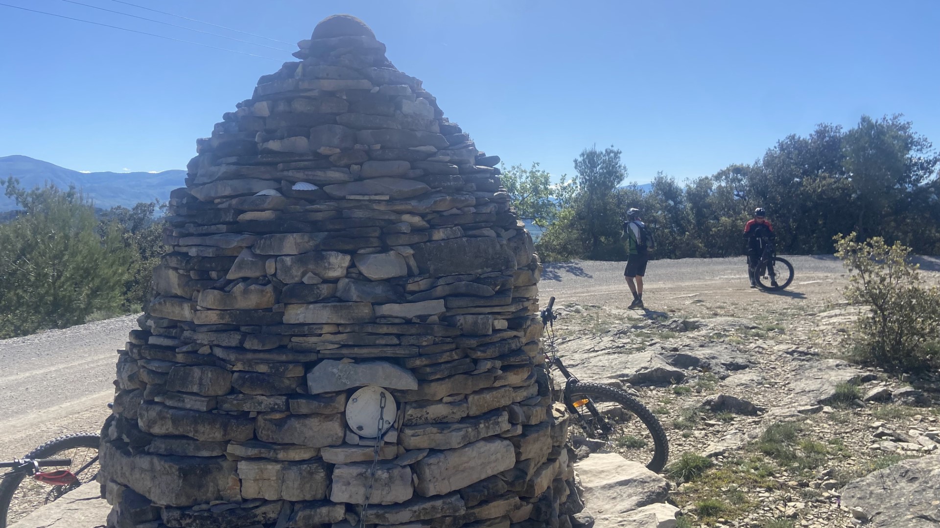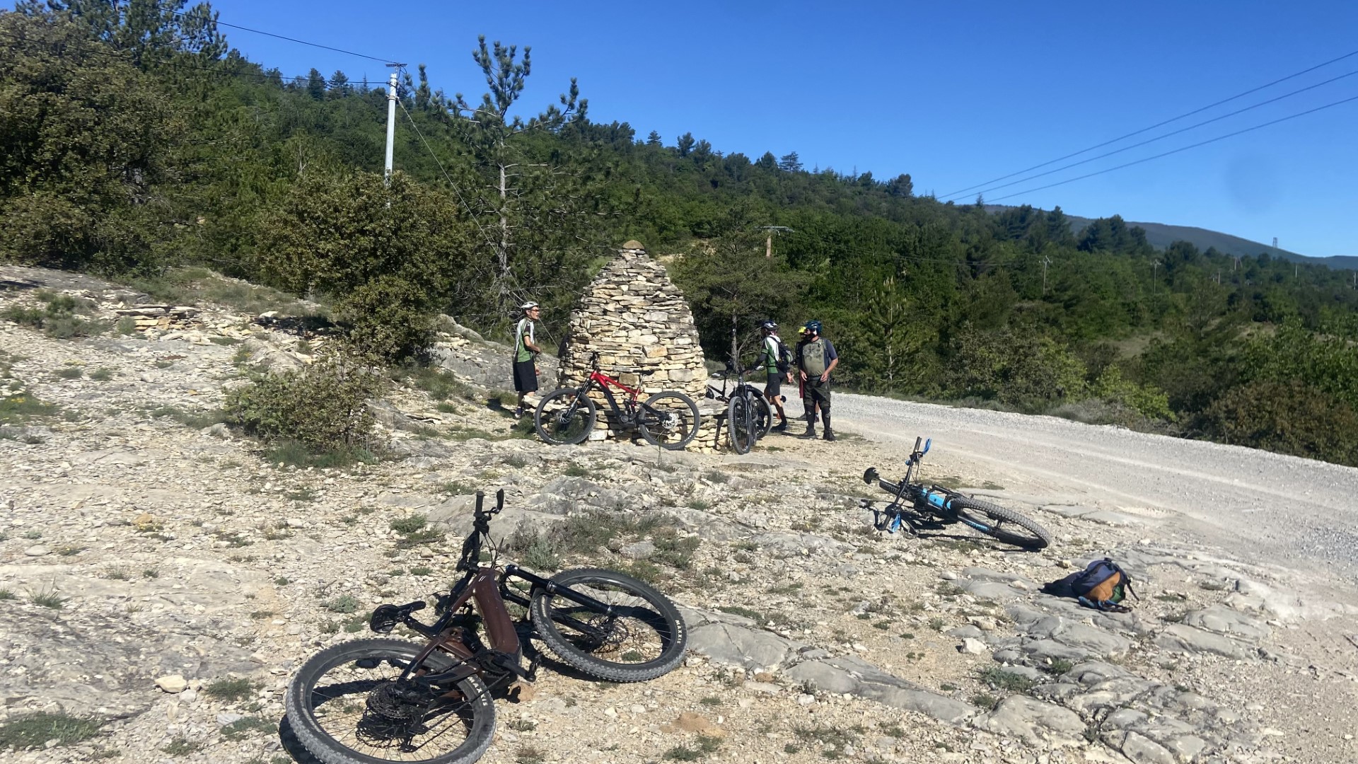 Nous sommes partis de l'office du tourisme à 9 heures pour grimper sur les hauts de Château-Arnoux jusqu'à rejoindre le GR 653D au lieu-dit La Peyrouse et de là nous avons pris la voie royale de Chante Puvine pour aller voir le Cairn de Puvine. Après, nous quittons la piste pour aller faire un tour dans les singles de la colline qui surplombe Peyruis. Puis retour par l'aérodrome de St Auban où on s'est arrêter un moment pôur se ravitailler,  en empruntant des petits sentiers ludiques, et ensuite nous sommes aller retrouver 2 spéciales du parcours N° 15, tout d'abord les toboggans série de peitites montées et descentes puis la Jack Daniel, piste noire où on pouvait quand même éviter les sauts en les contournant.